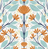 Folk Floral Verdigris & Orange by Seabrook Wallpaper