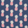 The Happy Pineapple Navy by Carole Fabric is 58" wide and contains 95% Polyester, 5% Linen. It is sampled in Bluebird and the pattern repeat size is 10 1/2" V, 8 3/4" H and is manufactured in China.