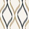 Wave Ogee Metallic Gold & Ebony by Seabrook Wallpaper
